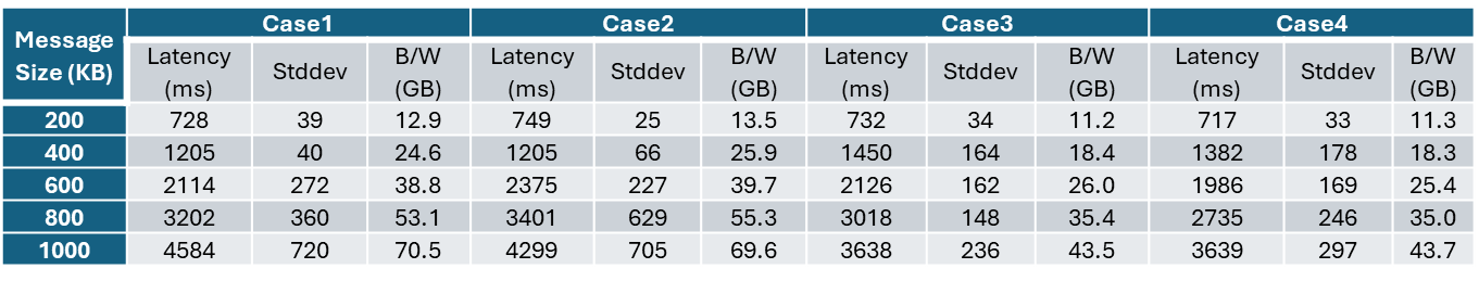 | Increasing Message Size (Table1) | 1000 | 10 | 200, 400,… , 1000 |