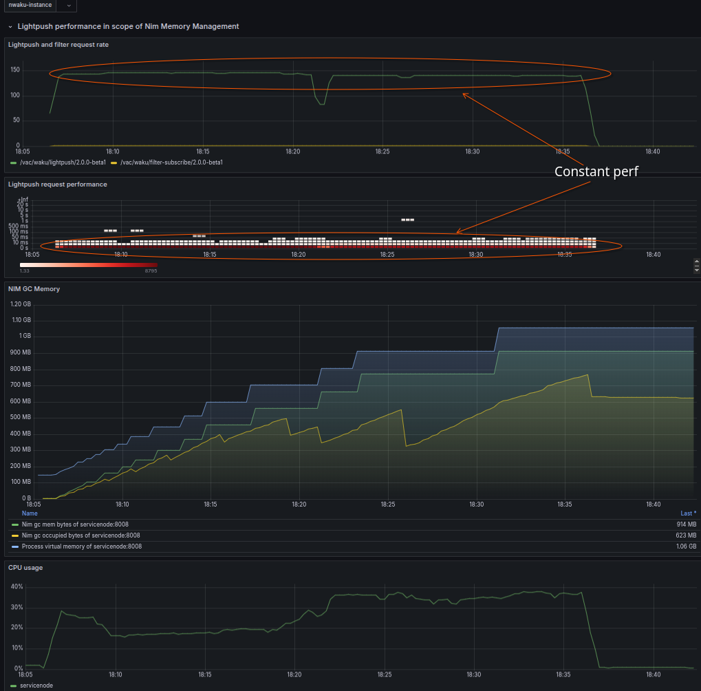 Any garbage collector algorithm harms performance. I try to show in this article that how the currently used Nim refc algorithm influences the reachable throughput of Waku protocols and what drawback we need to mitigate in order to enhance it. These are translate-able to scalability metrics.