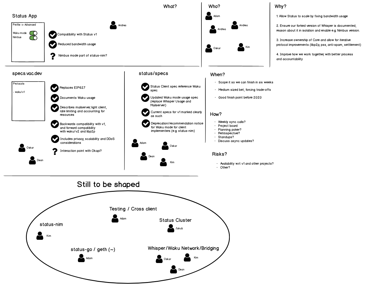 Waku kickoff notes: https://notes.status.im/dge-rNtCSwyUaUGPeh_bbQ#
